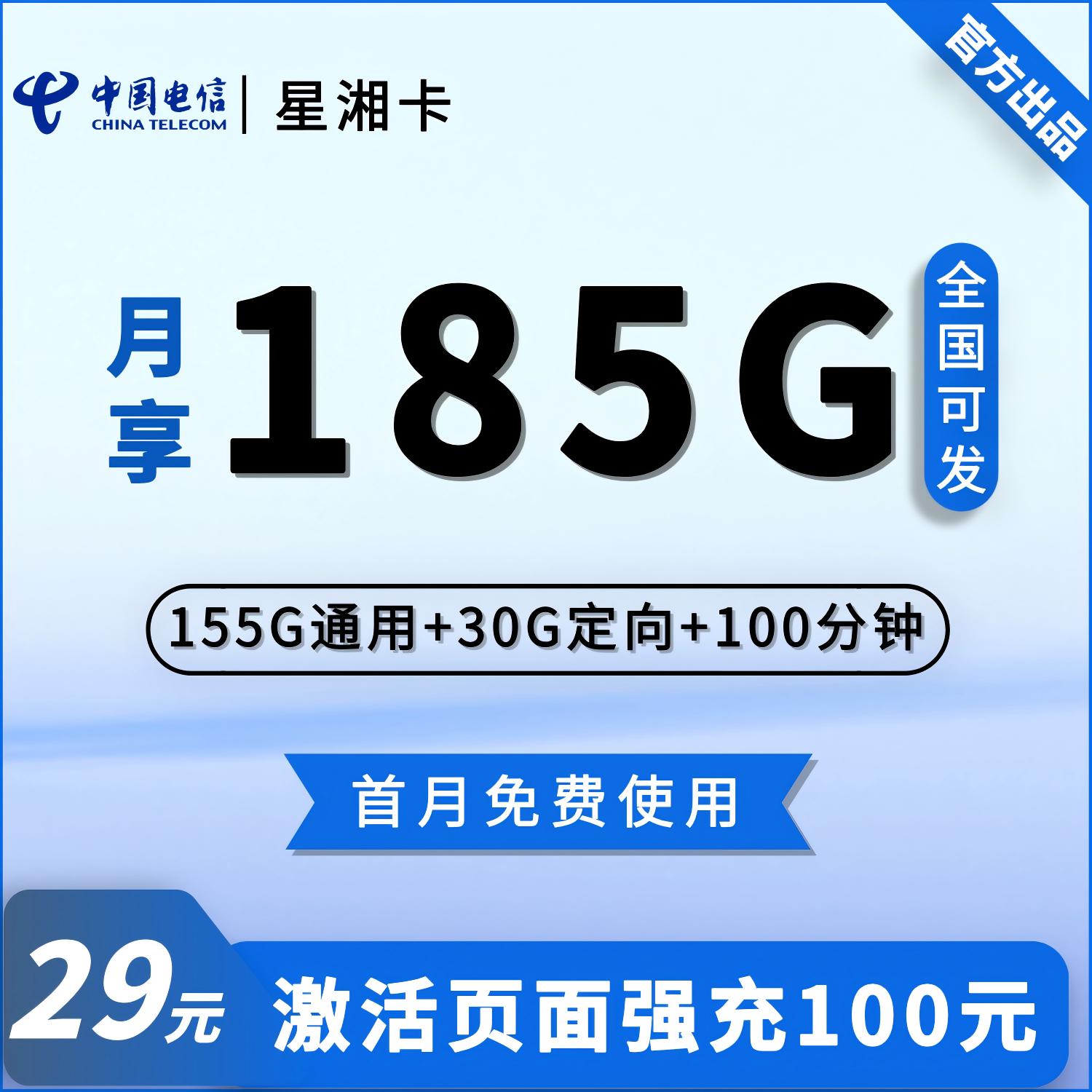 流量:185G;语音:100分钟;月租:29元/月