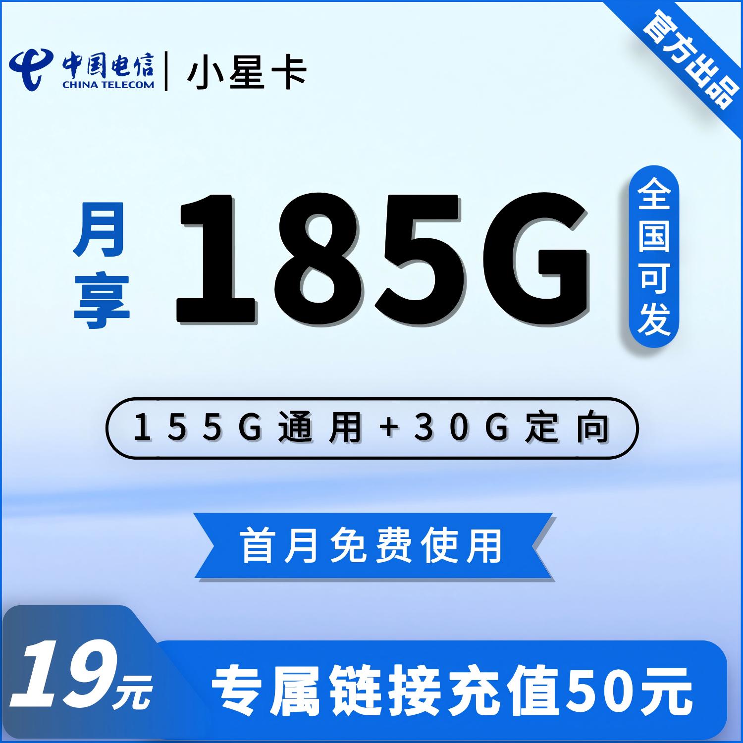 流量:185G;语音:0分钟;月租:19元/月
