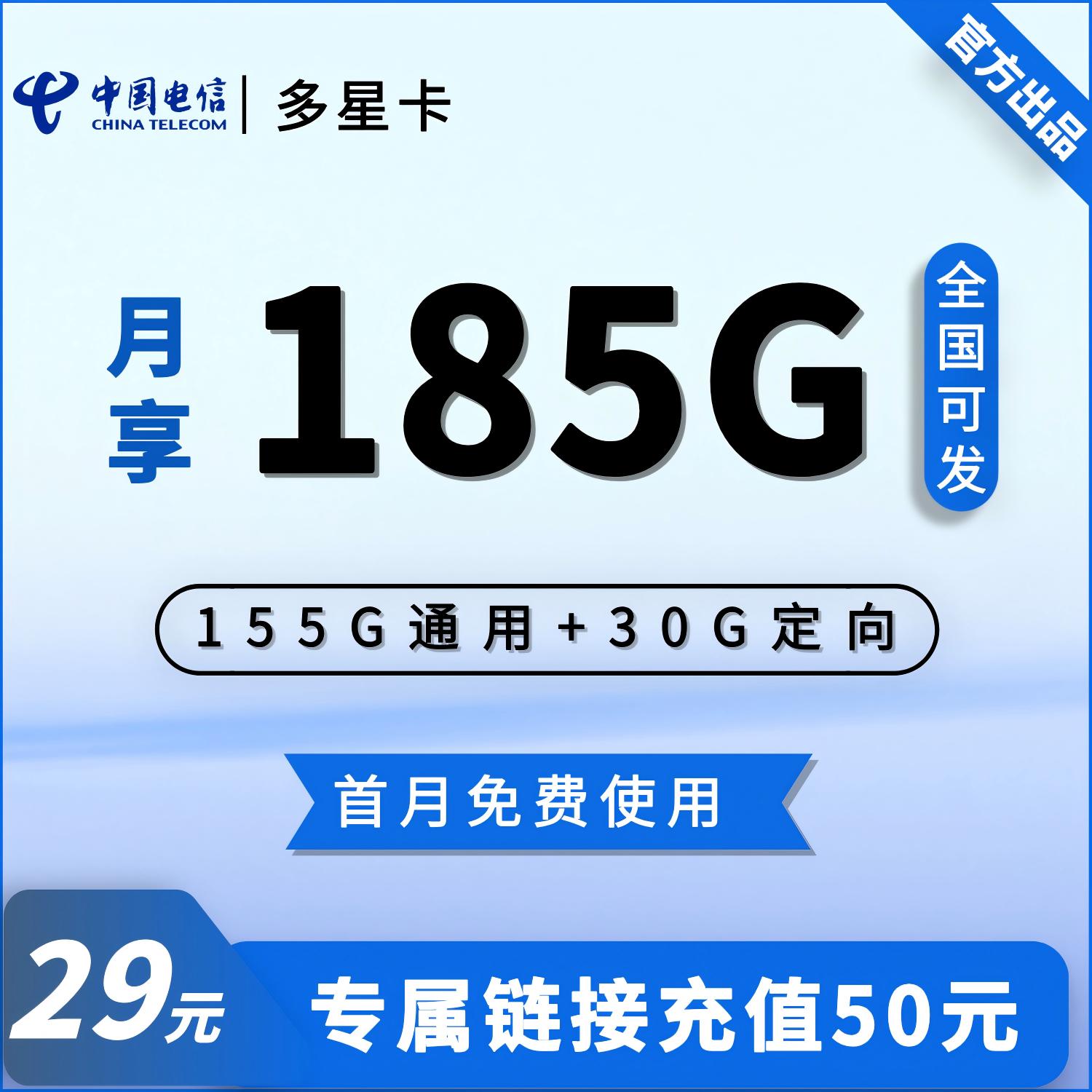 流量:185G;语音:0分钟;月租:29元/月